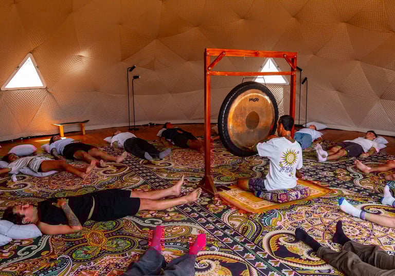 Experiencias de relajación profunda a través del sonido y la meditación. Utilizamos instrumentos y técnicas de armonización que favorecen la calma, la concentración y el bienestar emocional, generando un espacio de introspección y descanso mental.